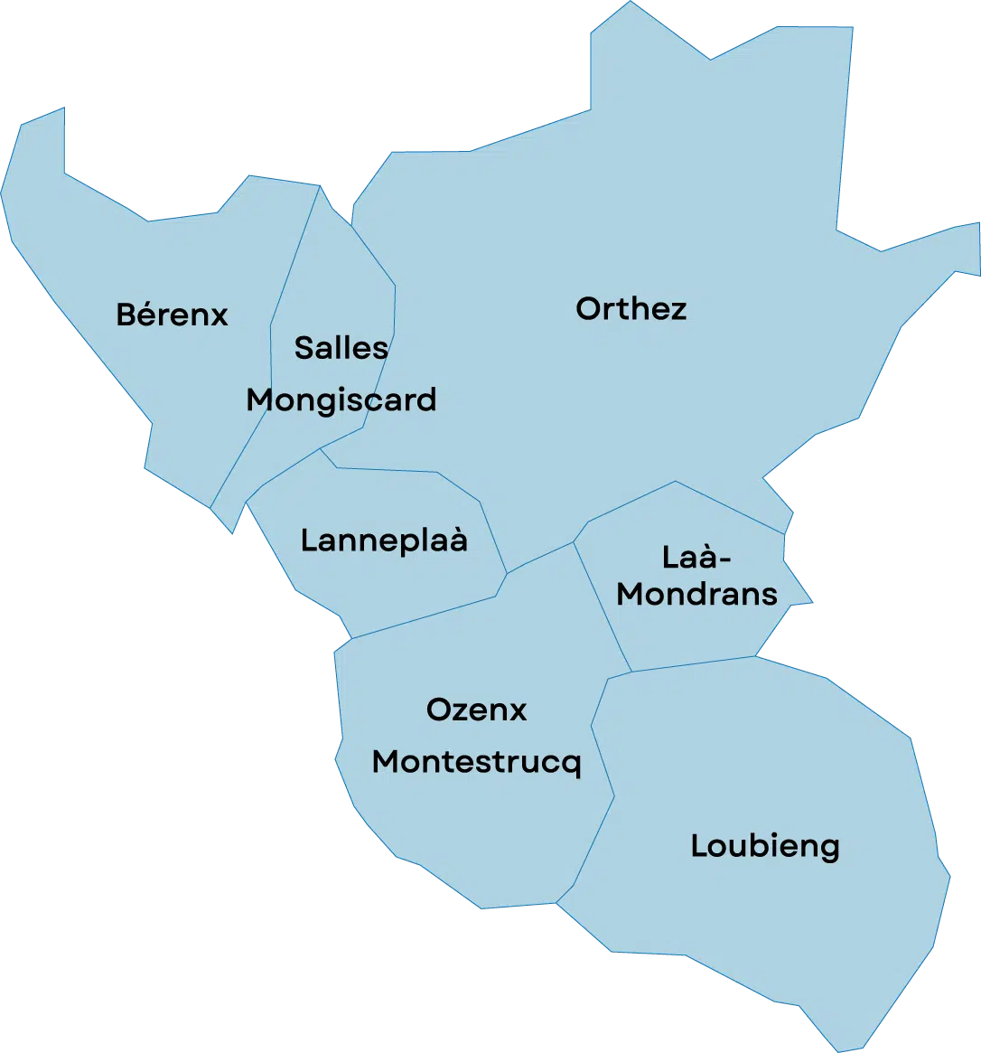 Laà-Mondrans, Lanneplaà, Loubieng, Salles-Mongiscard, Ozenx-Montestrucq, Orthez-Sainte Suzanne, Bérenx